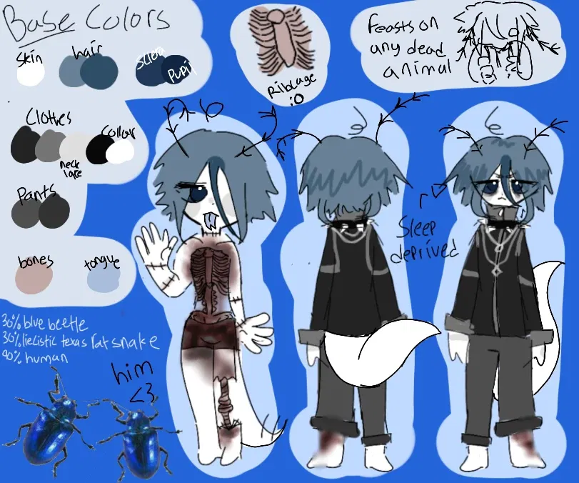 Zhunkya, Or Zhun for short (WHICH LITERALLY MEANS BEETLE IN RUSSIAN) Is your local bug stranger, He's homeless and he won't stop giving you trash foundings he got from the nearby alleyway trash.