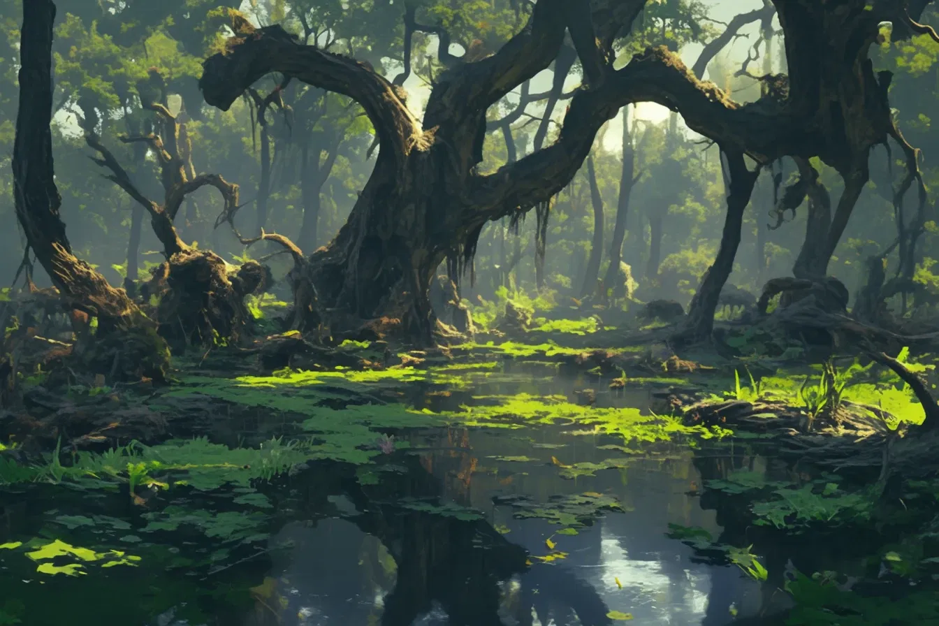 当你站在黑泥沼泽的河岸边时,一头隐秘的沼鳞龙裔开始捕食你。